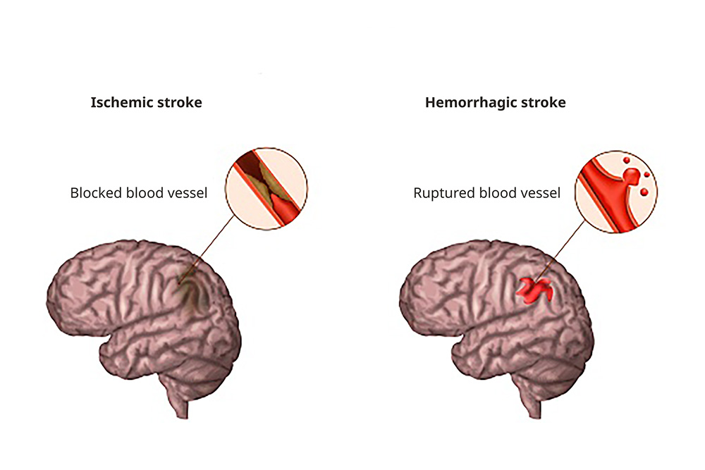 - Intracerebral hemorrhage: An artery within the brain bursts, and blood spills into surrounding brain tissue. High blood pressure is often the cause. This is the more common type.