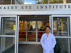 “I am always thankful to everyone who developed this program. I learn new things every day at Casey Eye Institute. People from the Echography Department are so good to me. It feels like home. This program showed me other steps I can take for my career.” – Dr. Shoon Lae