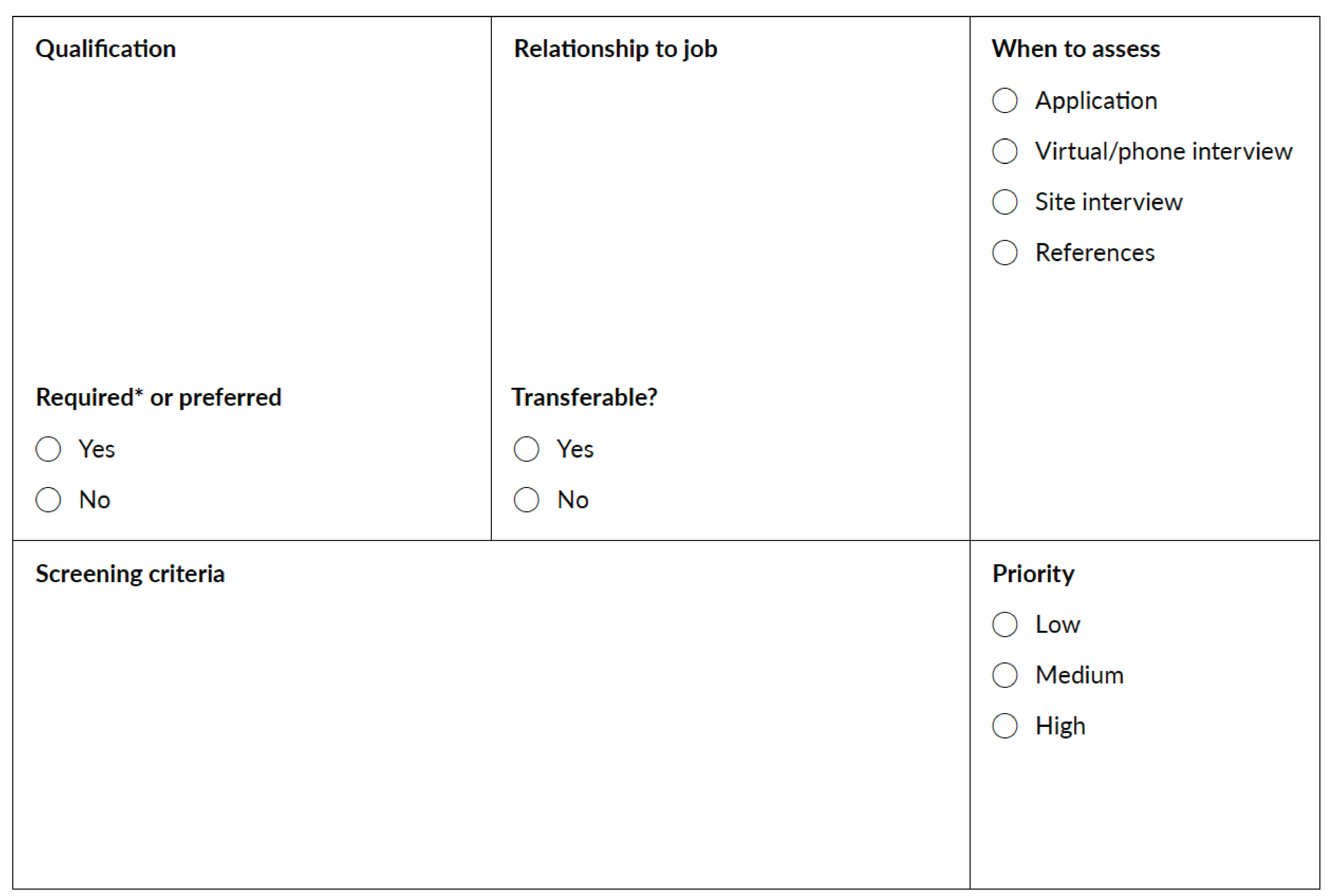 • Here is an example of an interview matrix. Provide each selection committee member with an interview criteria matrix based upon the position description.