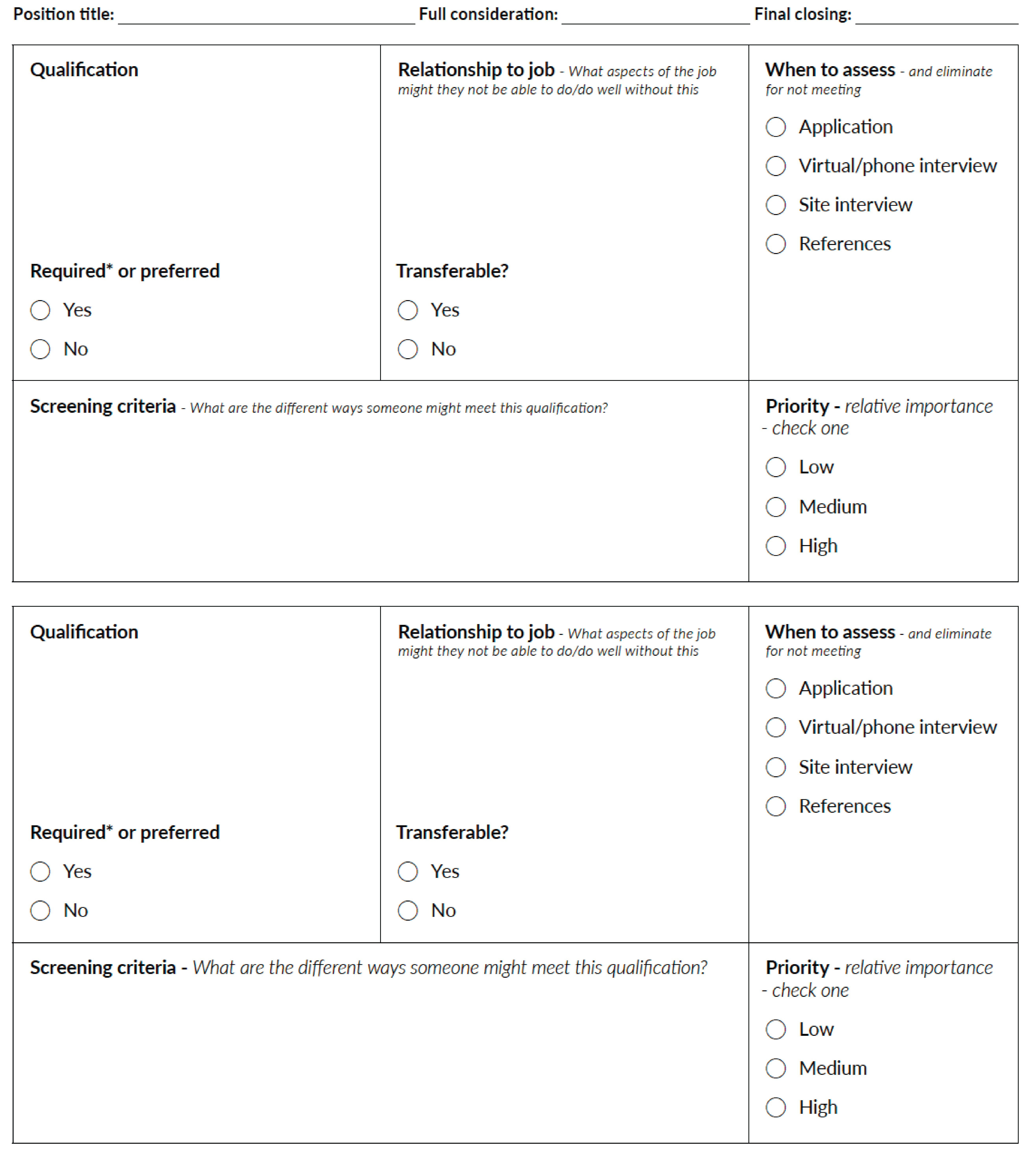 It is encouraged to create a long and short version of the job posting; for use in different venues.