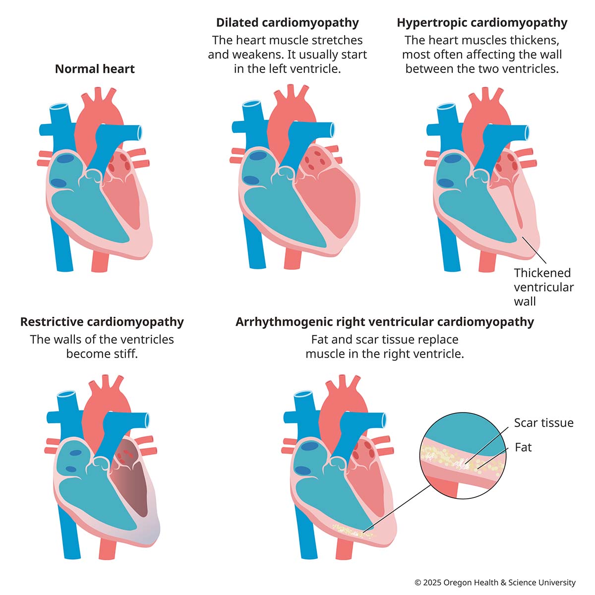 - Hypertrophic cardiomyopathy: The heart muscle becomes abnormally thickened. We offer complete care for hypertrophic cardiomyopathy in cooperation with the Knight Cardiovascular Institute. OHSU’s hypertrophic cardiomyopathy program is the first in Oregon. It’s also the only one in the Northwest named a Center of Excellence by the Hypertrophic Cardiomyopathy Association.