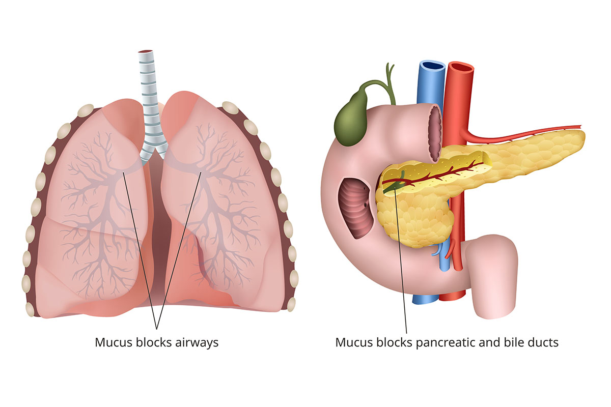 Children with cystic fibrosis have an abnormal gene that results in a defective protein. The protein (cystic fibrosis transmembrane conductance regulator, or CFTR) disrupts the balance of chloride, water and salt (sodium) needed to hydrate cells. This results in a buildup of thick, sticky mucus in your child’s bronchial tubes (airways), pancreas, intestines and liver.