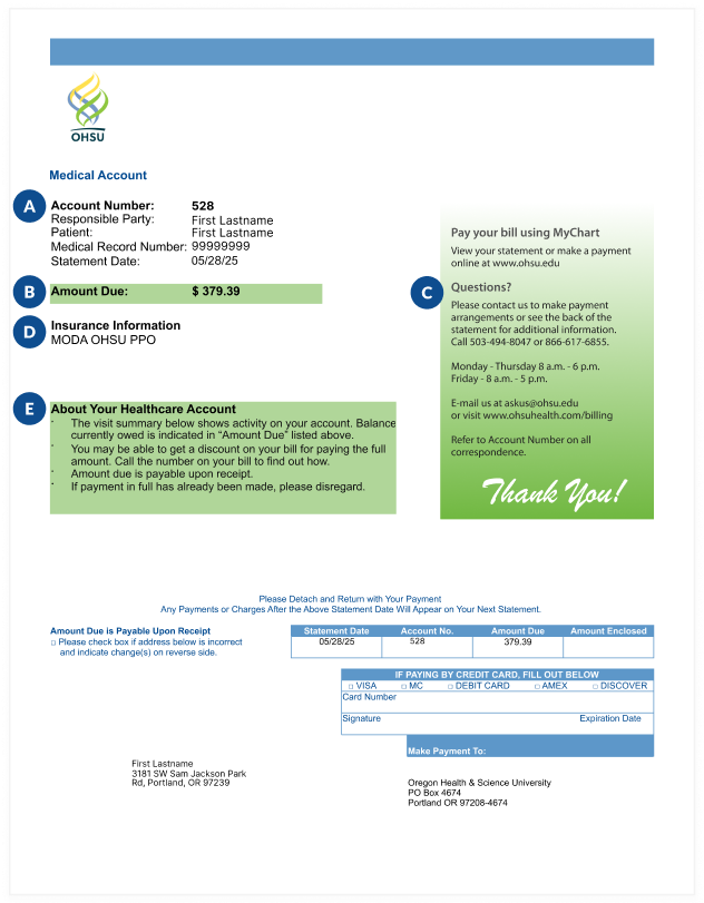 Thank you for choosing OHSU for your care. OHSU Patient Billing Services is here to help you with your questions about billing and insurance. Financial assistance is available for patients who qualify.