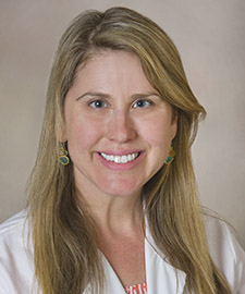 Hematologist-oncologist Rebecca Silbermann examines a patient