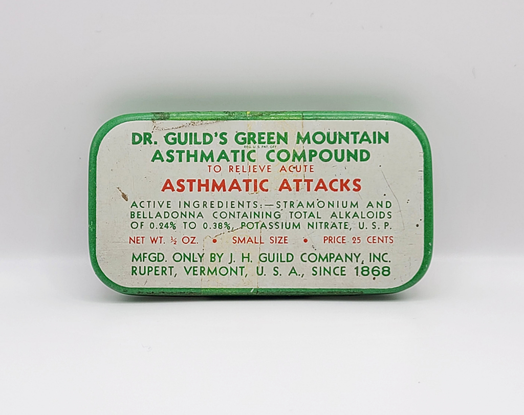 This asthmatic medicine was designed to work through inhalation. The user would light a spoonful of the substance and inhale the fumes to relieve symptoms of an asthma attack. Also available in cigarette form, this medicine includes toxic ingredients like belladonna and stramonium.
