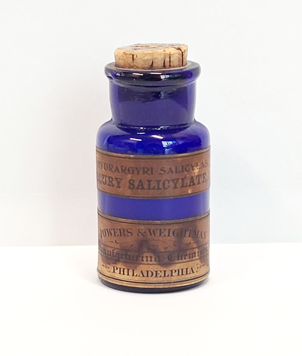 This bottle would have been sold by an apothecary or druggist. Due to the poisonous nature of the material, only patients who had a prescription from their doctor would’ve been able to purchase it. Mercury and mercury-containing preparations have long been used in medicine to treat such conditions as bacteria, fungus, syphilis, and yeast infections. The bright blue color was used to distinguish poison bottles from any food or medicine bottle.