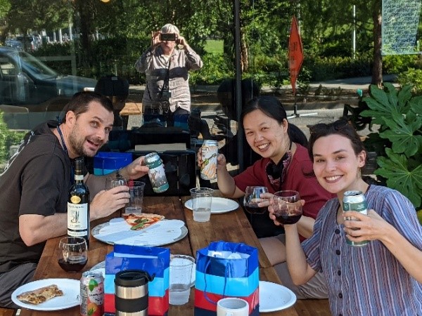 The members of the microscopy core came together a couple of weeks ago to bid farewell to Crystal Chaw (center) who recently left OHSU for a terrific teaching opportunity at Reed College. We will miss her but we have found her replacement from our user base at OHSU and are looking forward to folding our newcomer Felice Kelly into the team. Hannah Bronstein (right) is a recent graduate of Reed and Brian Jenkins (left) is an OHSU NGP graduate. And yes, Stefanie took the photo and is mirrored in the window!