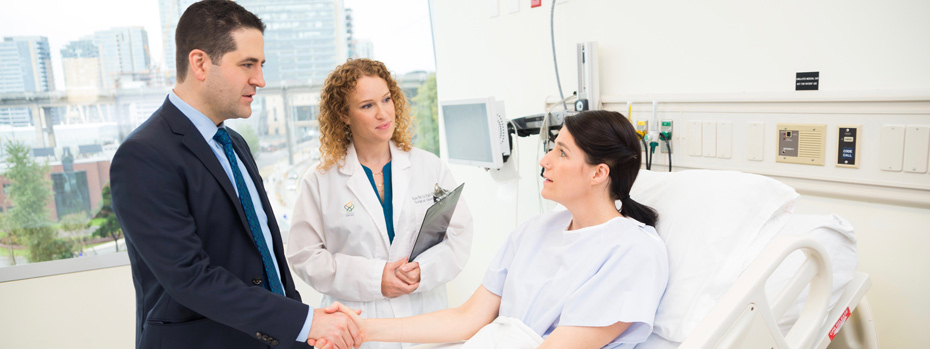 Dr. Skye Mayo (left), with registered nurse, Rachel Schafer (middle), is one of our expert surgeons for cancers of the digestive system.
