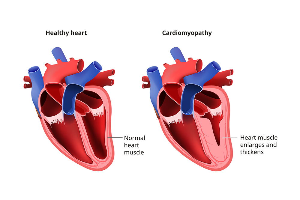 HCM is a genetic condition that thickens part of the heart muscle. Usually this occurs in the septum, which is the muscle that separates the right and left sides of your heart. The thickened muscle makes it harder for your heart to pump blood.