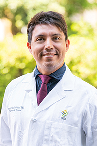 Dr. Inchaustegui was born in Lima, Peru, and graduated from the Universidad Peruana Cayetano Heredia. His family moved to the States upon him finishing medical school, and he went on to complete his Internal Medicine Residency and Chief Residency at Baylor College of Medicine in Houston. His research has focused on anticoagulation management and adverse events in patients with LVADs, and optimization of teaching interactions during medical consultation. He later spent a year as an Academic Hospitalist before moving to Portland for Cardiology fellowship, alongside his wife and their Shiba-Chow pup.