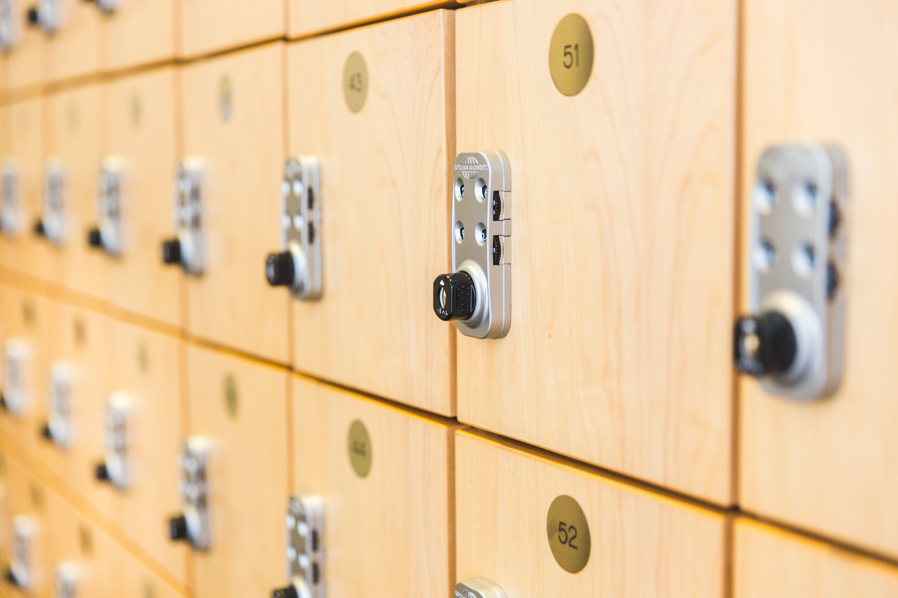 - Express lockers on the fitness floor for small items, lock included