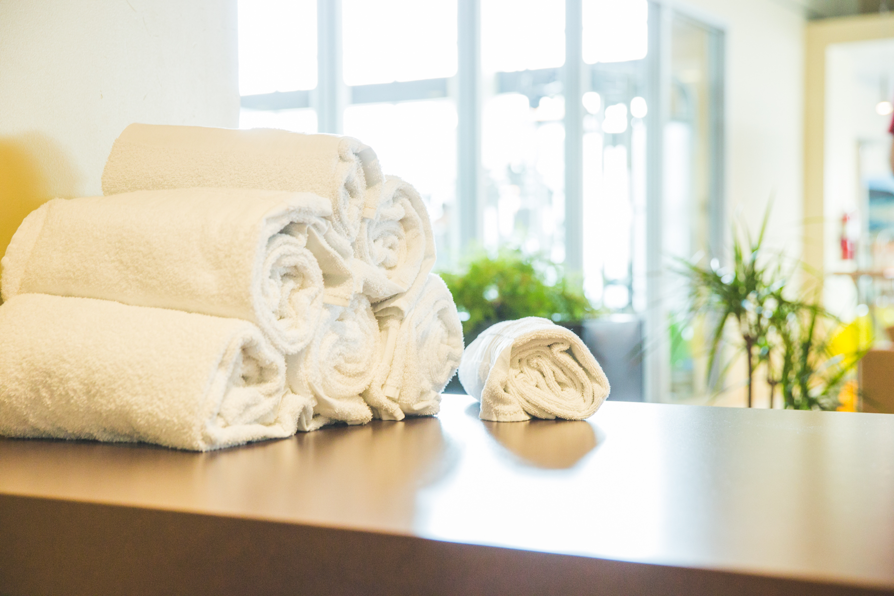Shower towels and sweat towels are provided