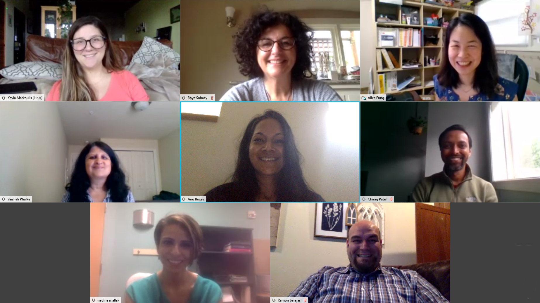 Diagnostic Radiology Diversity and Inclusion Committee meeting over webex. Kayla Markoulis, Roya Soheay, Alice Fung, Vaishali Phalke, Anu Brixey, Chirag Patel, Nadine Mallak and Ramon Barajas.