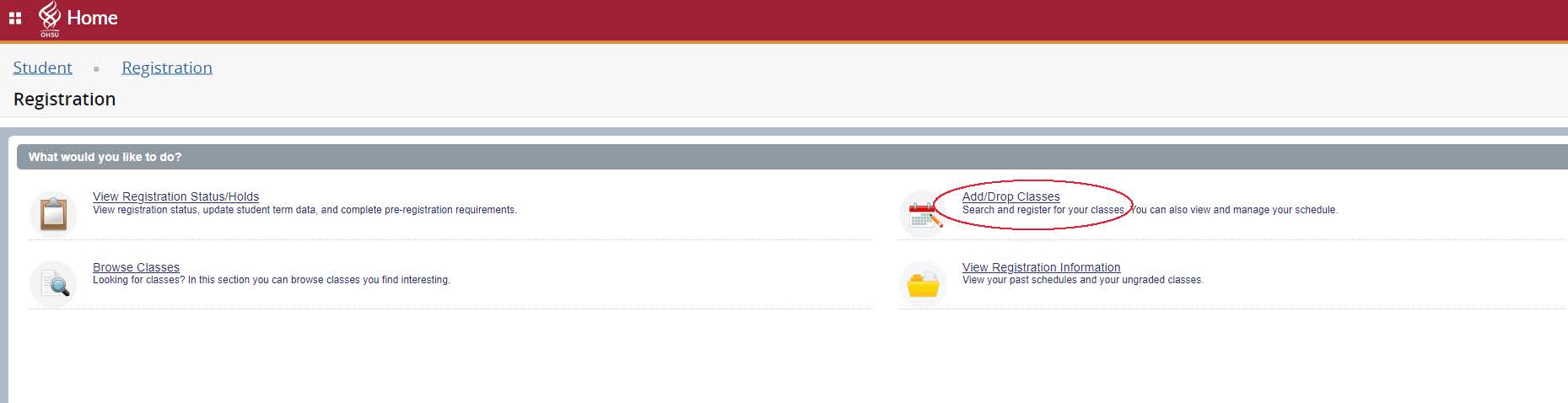 Add/Drop Classes circled