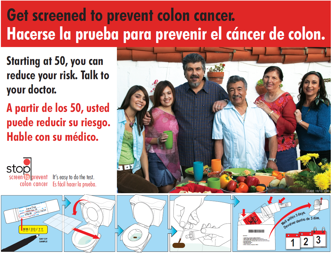 Spanish language poster promoting Virginia Garcia's STOP Colorectal Cancer project.