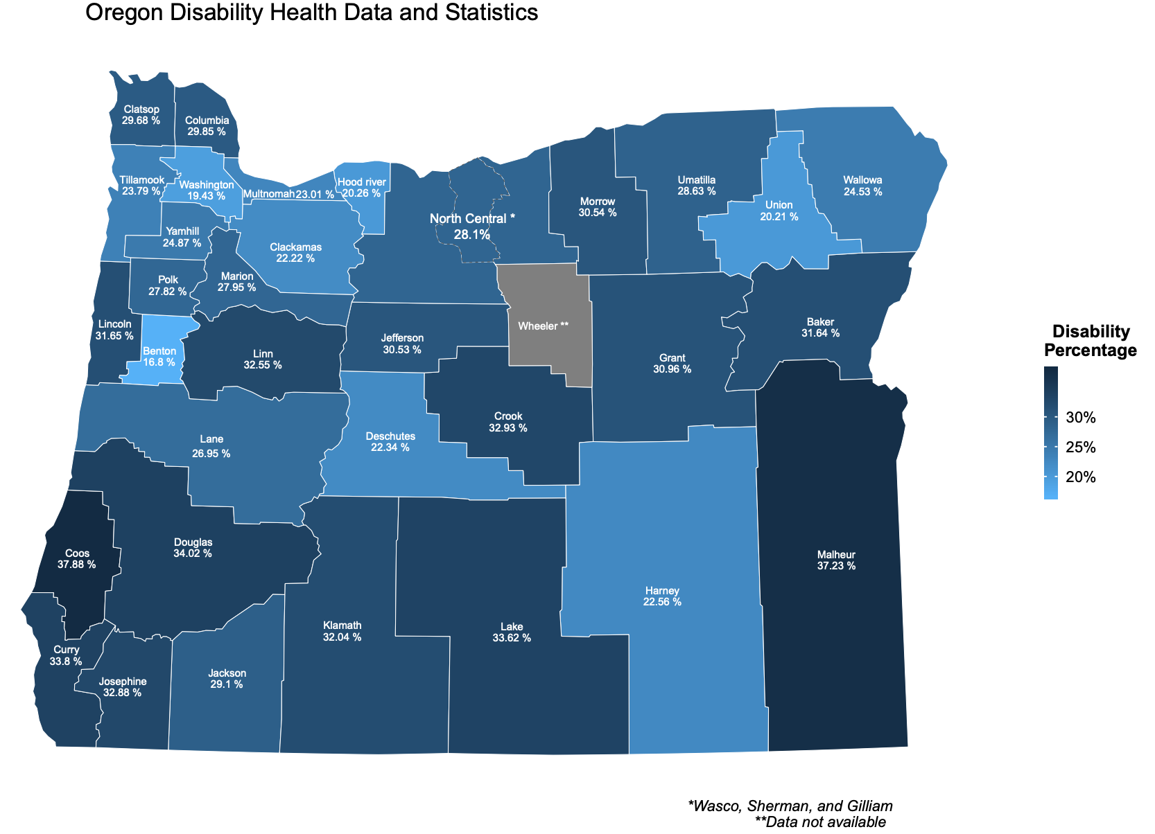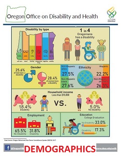 The Oregon Office on Disability and Health analyzes data relating to adult Oregonian with disabilities in order to identify the trends and disparities among this demographic.