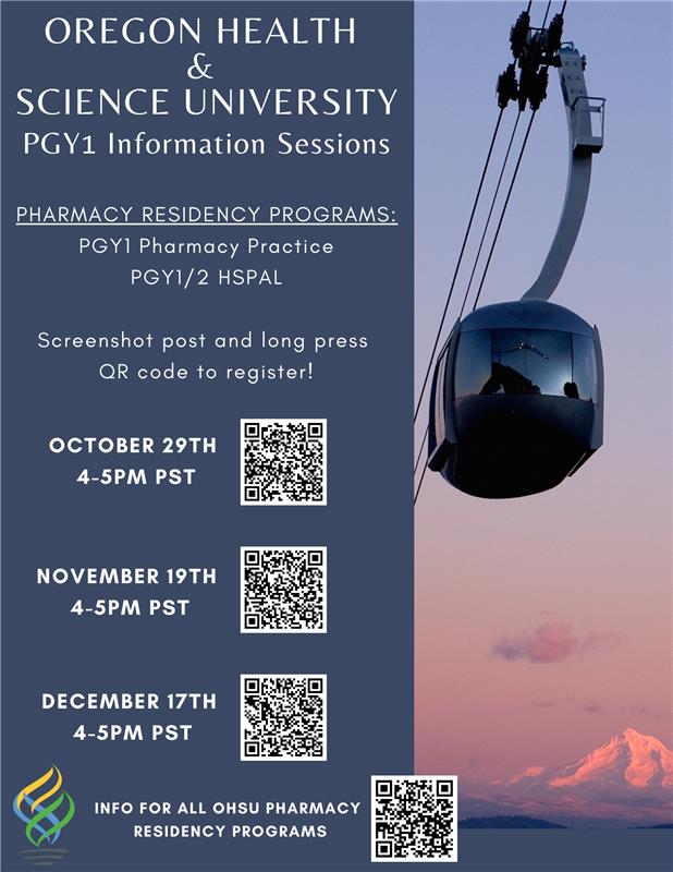 As Oregon's only academic medical center, the Oregon Health & Science University (OHSU) Department of Pharmacy Services is committed to teaching the next generation of pharmacy practitioners. We proudly offer four residency programs accredited by the American Society of Health-System Pharmacists (ASHP). A total of up to twelve positions are available each year: five positions for practitioners interested in the PGY1 Pharmacy Residency, one specialty residency position in PGY2 Pharmacy Informatics, two specialty two-year residency in PGY2 Health-System Pharmacy Administration, one specialty position in PGY2 Critical Care Pharmacy, and two specialty residency positions in PGY2 Oncology Pharmacy. Additionally, we offer one specialty residency position in PGY2 Infectious Disease Pharmacy, a program starting in 2019.