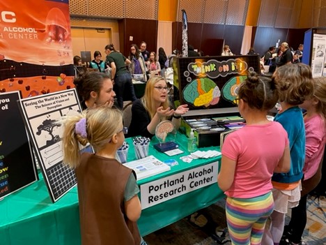 During the current funding cycle OHSU created the Office of Science Education Opportunities. The office is staffed by eight people including four community liaisons, and a middle-school coordinator. This office organizes 4-6 outreach opportunities for middle and high school students from underserved communities, including multiple OnTrack OHSU! visits. Also OHSU has been recognized by the Society for Neuroscience as having one of the largest series of Brain Awareness events in the nation. These events include a public lecture series (5000 attendees), a K-12 teachers’ workshop (150-300 participants), and a Brain Fair (1000-1500 attendees/day) in collaboration with the local Oregon Museum of Science & Industry. PARC has been a seminal partner with OHSU in these events since their inception in Spring 2000. Each year for Brain Awareness Season, PARC investigators and NIAAA T32, F30, F31, and F32 trainees engage the public and translate their science into interactive exhibits, programs, and informative talks. The trainees play a critical role not only in carrying out Brain Awareness activities, but also in passing the mantle of leadership and organizational knowledge from one graduate/postdoctoral cohort to another. PARC Brain Fair exhibits include: