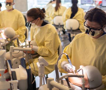 The first year begins with an introduction to professionalism, dental history, and a cadaveric gross anatomy course. Courses in biochemistry, physiology, histology, neuroscience, dental anatomy, head and neck anatomy and inflammation follow to build on the sciences needed to provide oral health care. Students are introduced to the fundamentals of the oral examination, oral radiology, dental materials, periodontology and prevention of dental diseases.