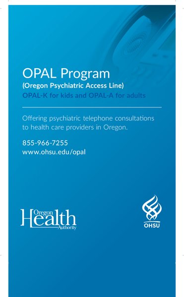OPAL is a collaboration between OHSU's Division of Child and Adolescent Psychiatry, Adult Psychiatry, the Oregon Pediatric Society (OPS) and the Oregon Council of Child and Adolescent Psychiatry (OCCAP).