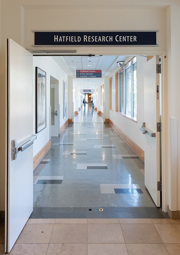 We are on the 14th floor of the Mark O. Hatfield Research Center. You’ll need to enter the Hatfield Research Center from OHSU Hospital, as the Hatfield’s outside entrances are locked.