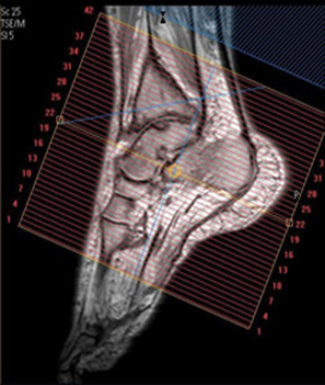 | SAG | T1 | TSE | 3mm | 1mm | None | 15cm | Angle to Calcaneus |
