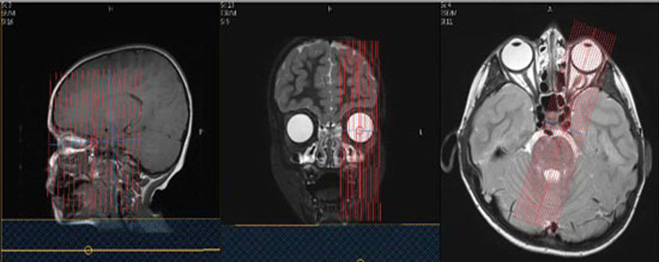 Orbits Only Coronal Coverage: Anterior margin of globe to anterior surface of pons, perpendicular to axis of the orbital segment of the optic nerves.