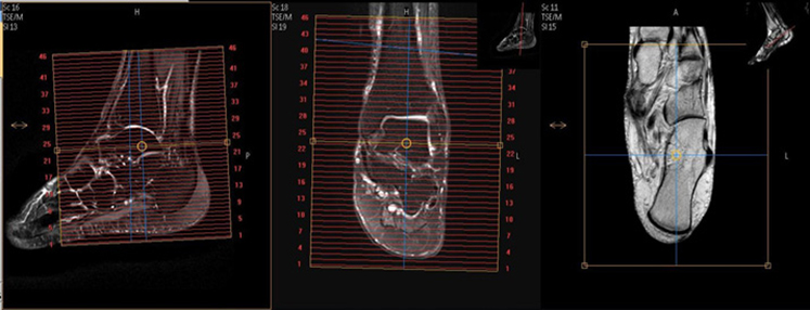 | SAG | T2 STIR | TSE | 3mm | 0.3mm | STIR | 15cm | Angle to Calcaneus |
