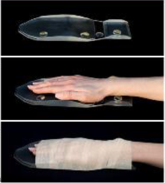 - Lay the hand/wrist on curved surface of the frame, with fingers comfortably together