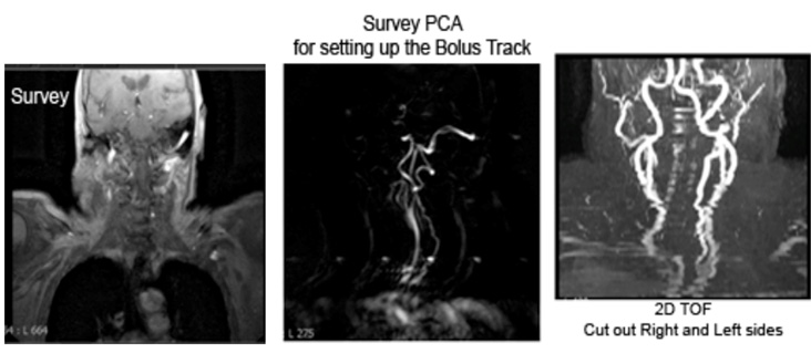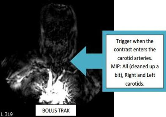 | COR | CE 3D TOF | 3D FFE | 1.2mm | 0mm | None | 35cm | Power inject contrast and 20cc saline flush @ 2.0 cc/sec. Trigger when you see contrast beginning to advance into the carotids. |