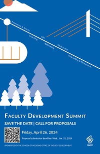 The Faculty Development Summit is geared towards anyone who currently has, or plans to have, responsibility to support the development of faculty within individual departments, divisions or across the School of Medicine more broadly. Broadly, this includes Department Chairs, Vice-chairs for Faculty Development, Department Promotion and Tenure Committee Chairs/Champions, faculty development program managers, and other faculty or staff responsible for planning and administering faculty development initiatives and supporting the career development of School of Medicine faculty members.