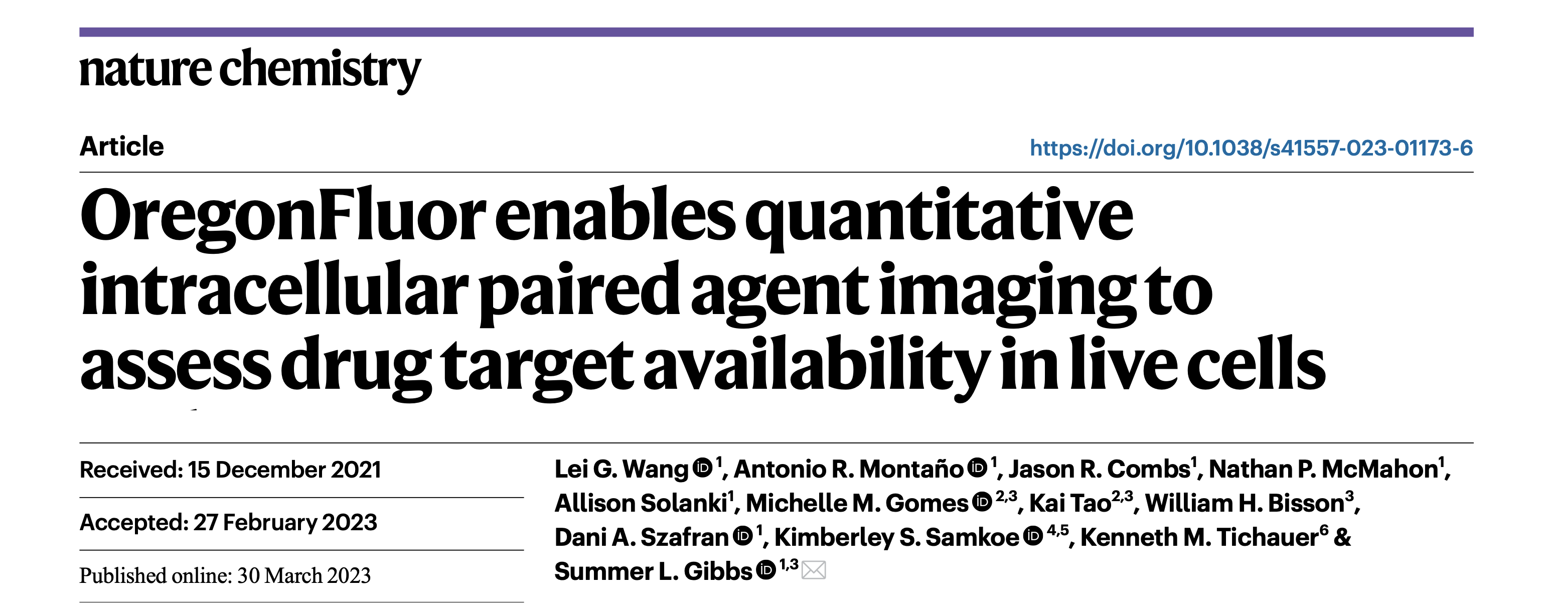 Mar 2023 - Today we report in Nature Chemistry on our fluorophore development work for quantitative imaging applications. We can now use OregonFluor-labeled therapeutics to validate drug targets and quantify drug target availability in live cells and tissues. Read more.