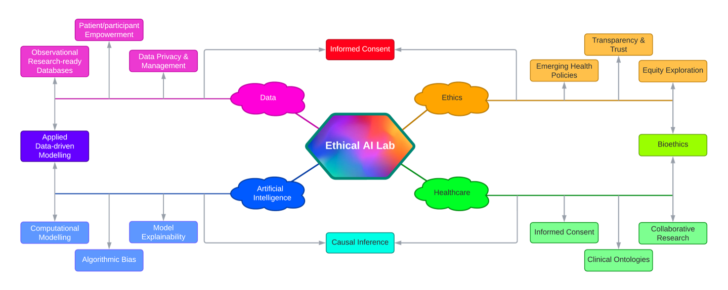 In its approach to machine learning and artificial intelligence, the lab focuses on the use of interpretable models for Causal Inference to improve transparency in AI-driven decision-making processes, aiming to build trust between scientists, healthcare professionals and patients. Causal inference methodologies are utilized to identify relationships in healthcare outcomes, with counterfactual reasoning models supporting evidence-based decision-making. Efforts to address bias involve the implementation of strategies designed to prevent discriminatory outcomes in diverse patient populations, with a particular focus on the estimation and mitigation of bias.
