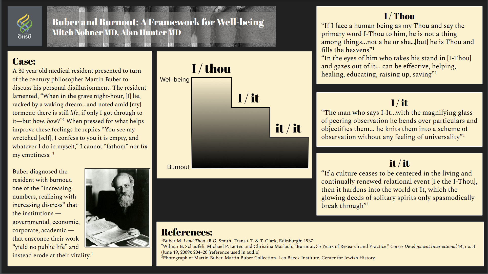Buber diagnosed the resident with burnout, one of the “increasing numbers, realizing with increasing distress” that the institutions — governmental, economic, corporate, academic — that ensconce their work “yield no public life” and instead erode at their vitality.