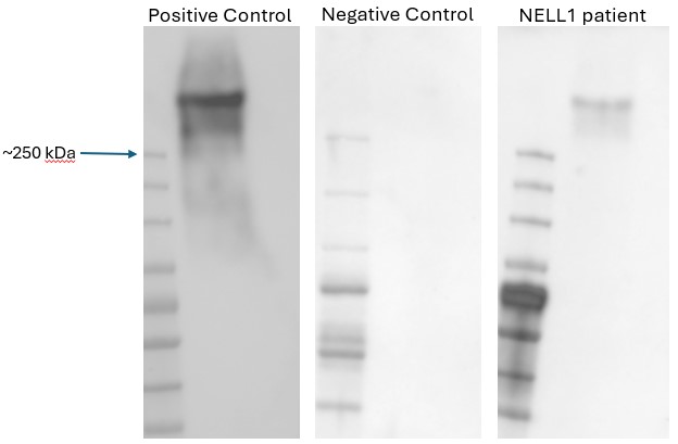 The Avasare Lab uses Western blot imaging to detect NELL1 antibody.