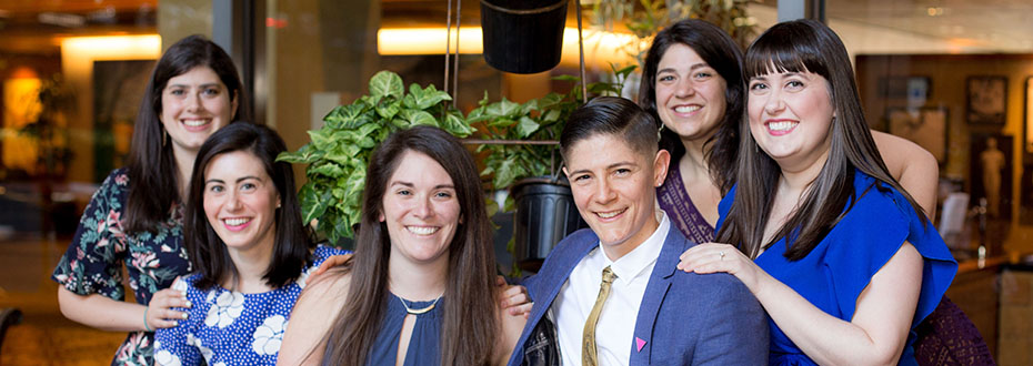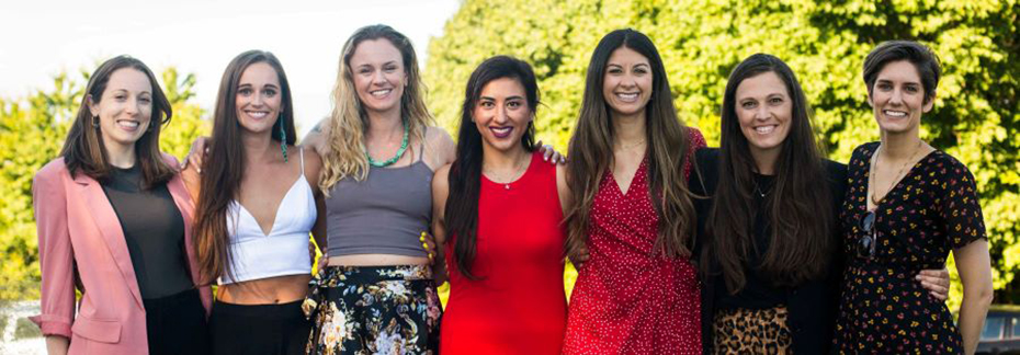 Left to right, center of photo: Nikki Fennimore, Kristin Prewitt, Aditi Bommireddy, Osii Mbata