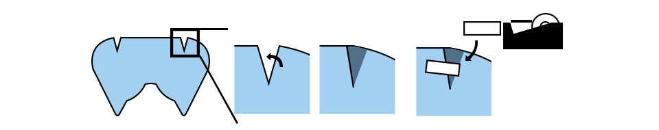 Fold and overlap corner reliefs and secure in place with a 2-inch piece of Scotch or the alternate side.