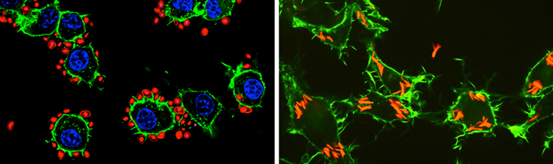 Bottom, Phagocytosis: Phagocytic cup formation in cells that are devoid of sphingolipids.