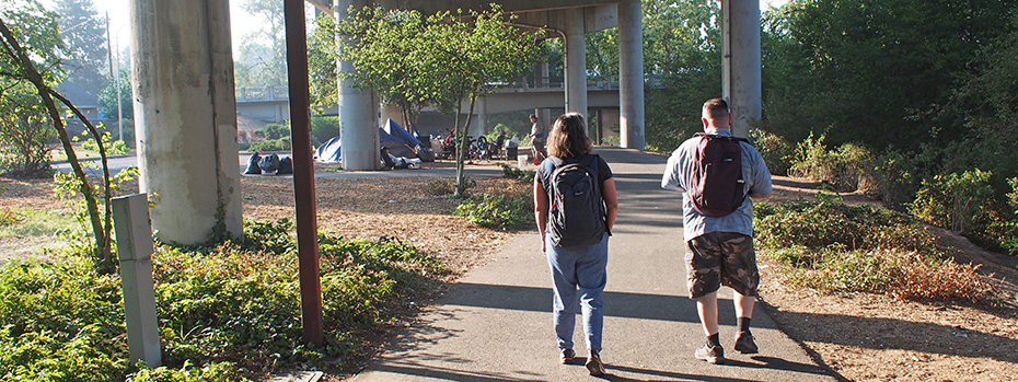 OHSU's School of Nursing Ashland and Klamath Falls campuses partner with community-based organizations to provide care coordination, mental health, wound care, foot soaks, and supplies that support survival on the streets. Faculty and students use patient-led approaches to build relationships.
