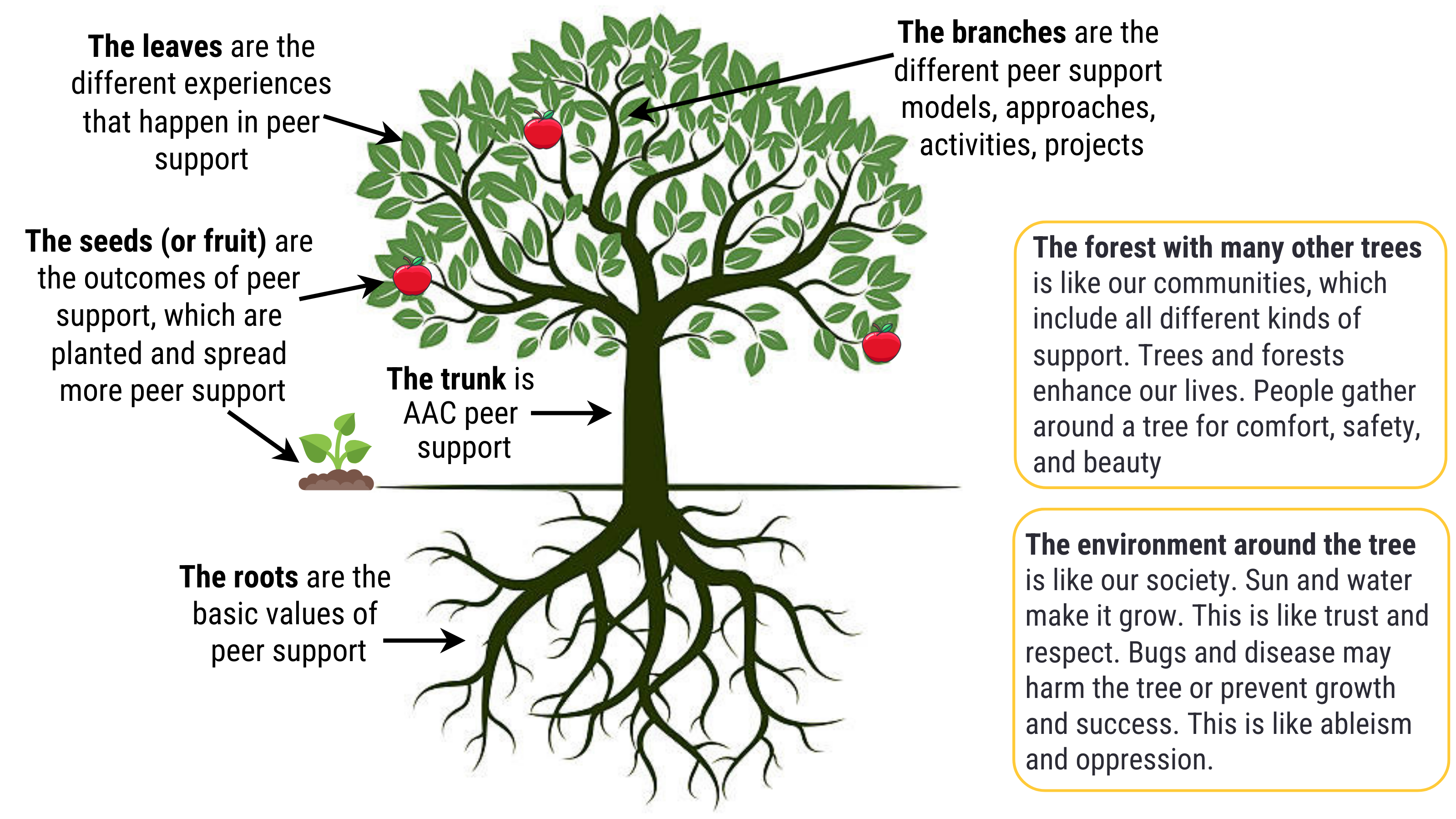 - Descriptions of peer support models that you have experience with, inside and outside the AAC field
