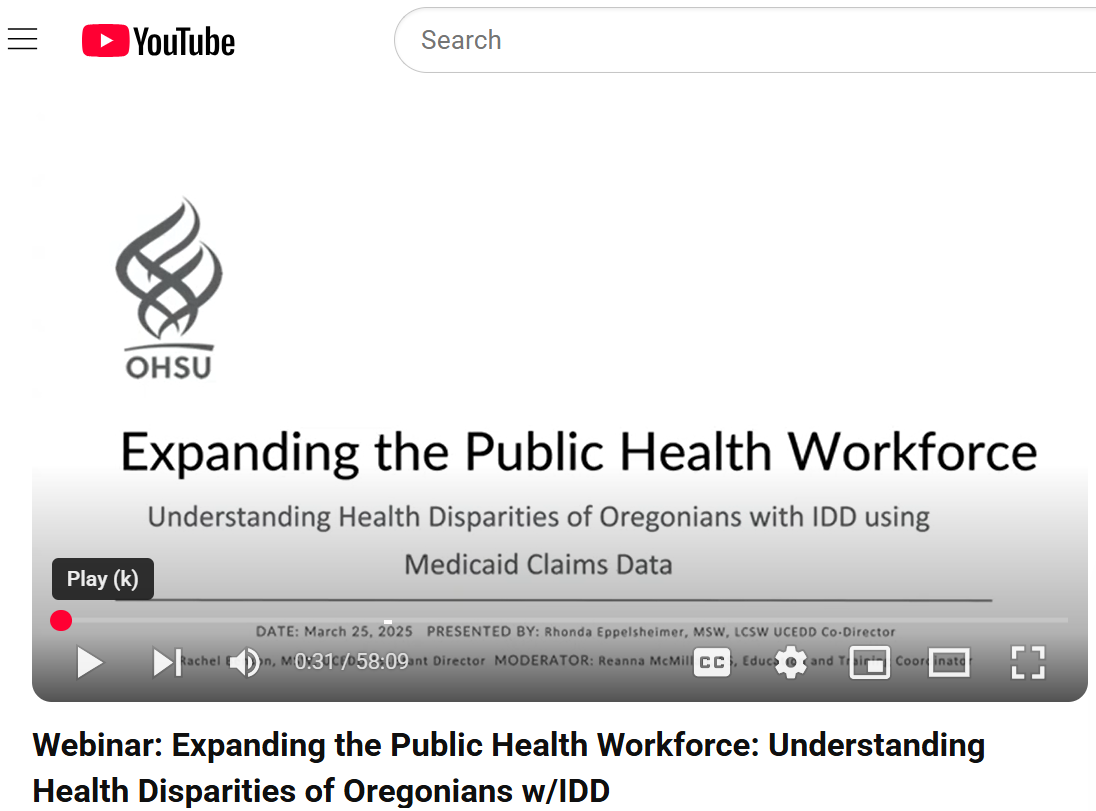 Expanding the Public Health Workforce: Understanding Health Disparities of Oregonians with IDD