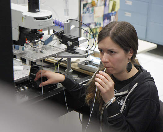 Graduate students interested in working with Vollum scientists must first be enrolled in one of OHSU's basic science programs, such as the Neuroscience Graduate Program (NGP), the Graduate Program in Biomedical Sciences (PBMS), or the MD/PhD program in the School of Medicine. The majority of the students in the Vollum are part of the Neuroscience Graduate Program, whose director is Kelly Monk, Ph.D. This program continues to draw new faculty from throughout the OHSU campus, ensuring students access to exceptional mentoring. The NGP is supported by several institutional training grants. The Vollum is also home to many students in the PMCB, a campus-wide program that includes the OHSU basic science departments.